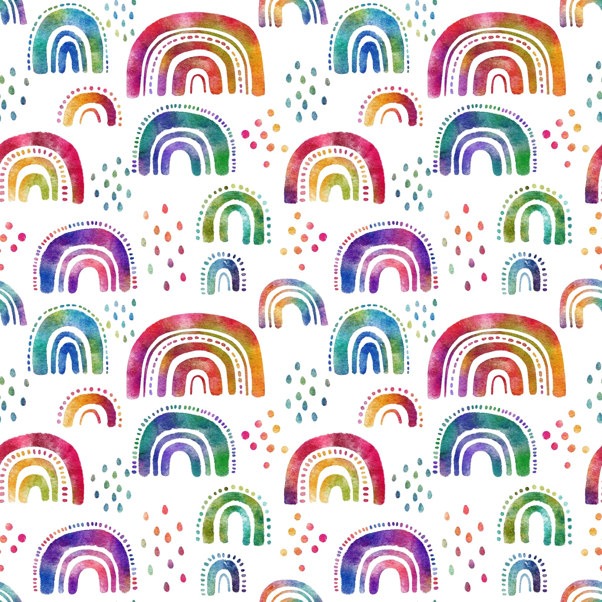 4. Rainbow Joy – colorful watercolor rainbows with dotted accents, playful and bright.